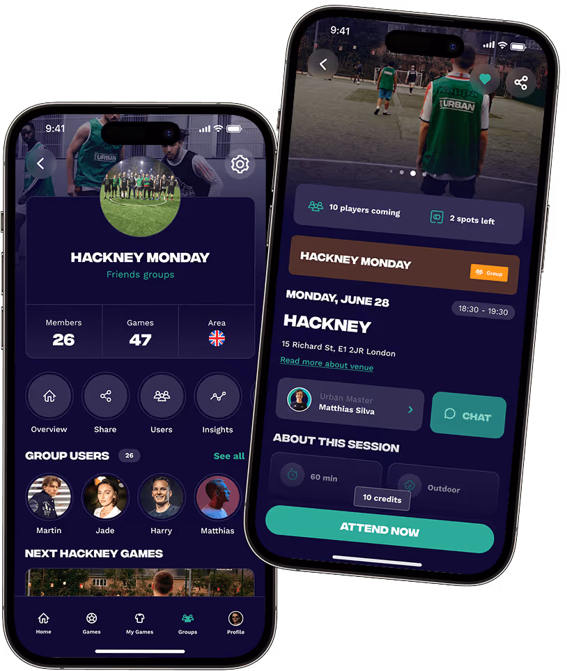 FC Urban is all about playing football on your own terms. With our app, you can easily discover nearby locations, book a slot, and show up to play whenever it suits you. We take care of the organization, provide bibs and balls, and our masters will even track your stats. No obligations, just pure football fun.
